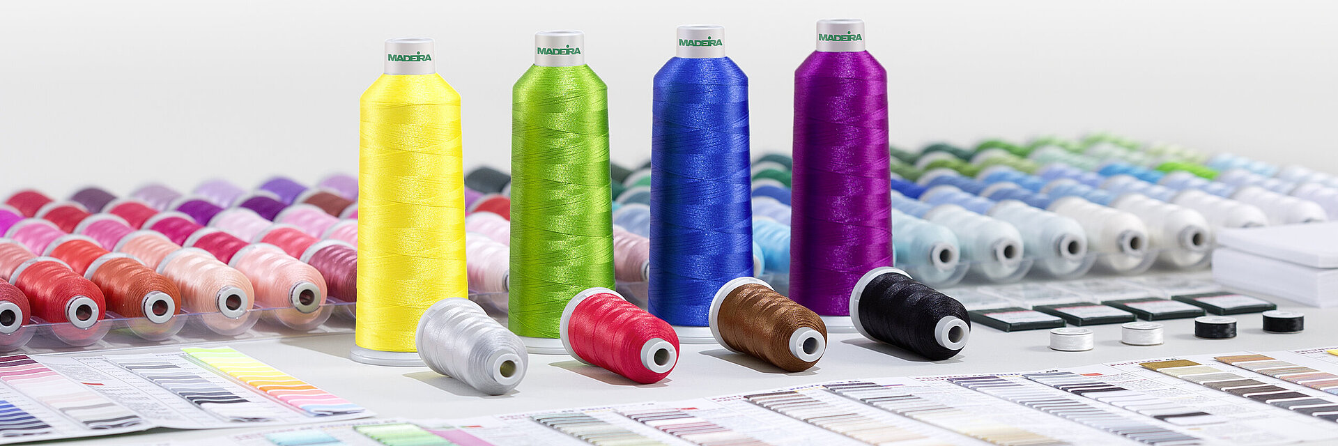 Die Garne werden in einer großen Farbpalette, inklusive Multicolour- und Neonfarben angeboten. Sie können so den Nuancen verschiedenster Stoffe angepasst werden oder intensive Kontraste hervorrufen. Polyestergarne verfügen über eine hohe Farbechtheit und sichern so den Erhalt der Stickerei.