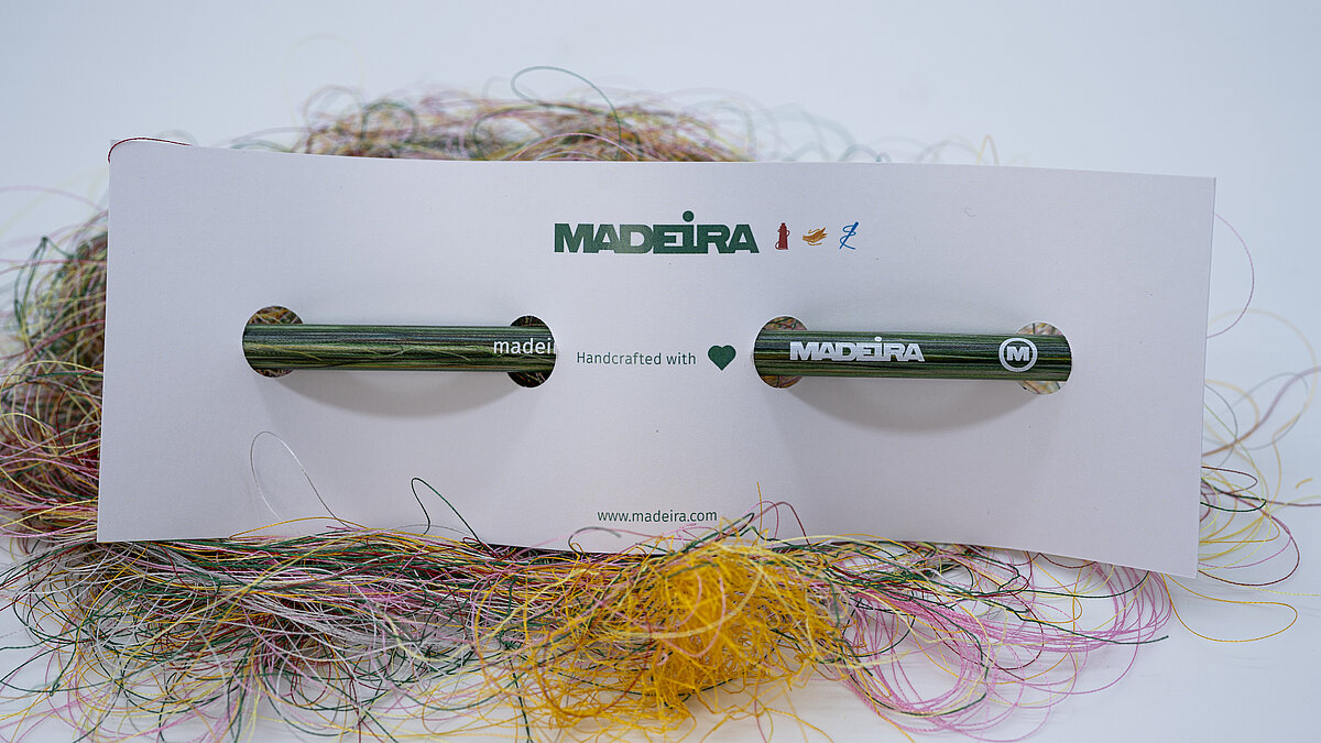 Even the most efficient processes create some waste. But as we don’t want to throw away our beautiful embroidery threads, we’ve decided to give them a second life. This second edition of the Madeira thread pen is now 100 % upcycled from Madeira production waste and is ready to serve you for a very long time.