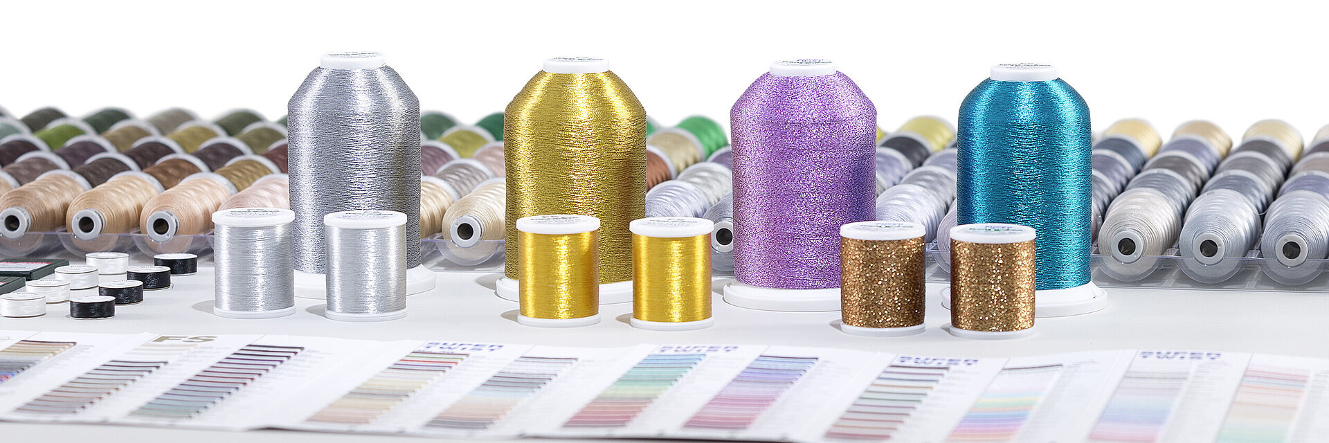 Les fils FS avancent avec souplesse sur les machines à broder. Ils sont dotés d’une exceptionnelle brillance, qu'ils doivent surtout à leur structure spéciale. Si vous êtes attentif à certains détails, vous réussissez à optimiser sans cesse vos résultats. Essayez par vous-même et découvrez combien il est facile d’utiliser nos fils métallisés comme fils de dessus, pour broder avec les habituels fils de canette anti-peluches en polyester.
